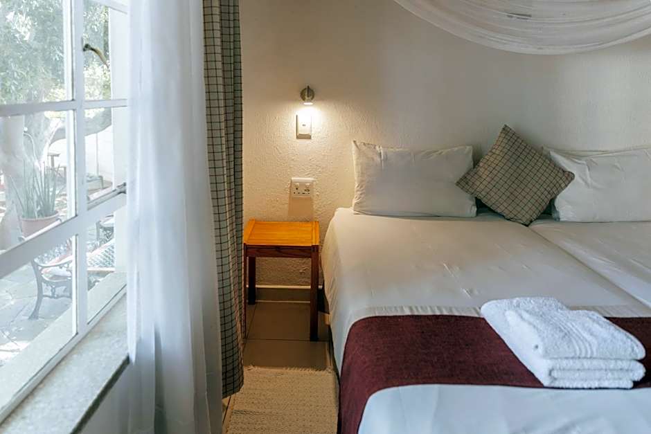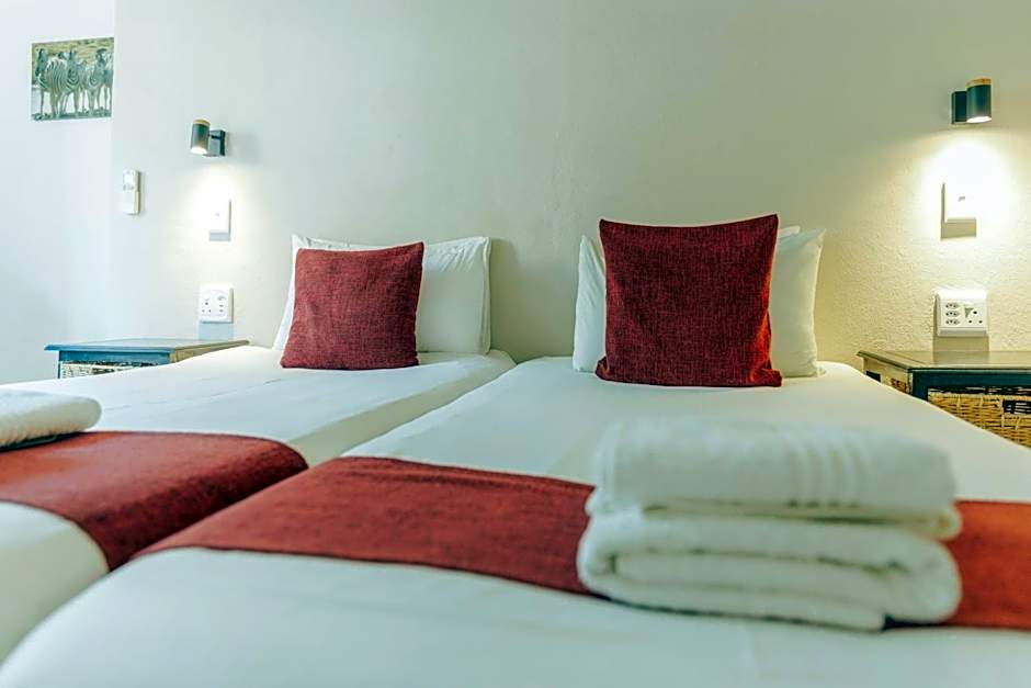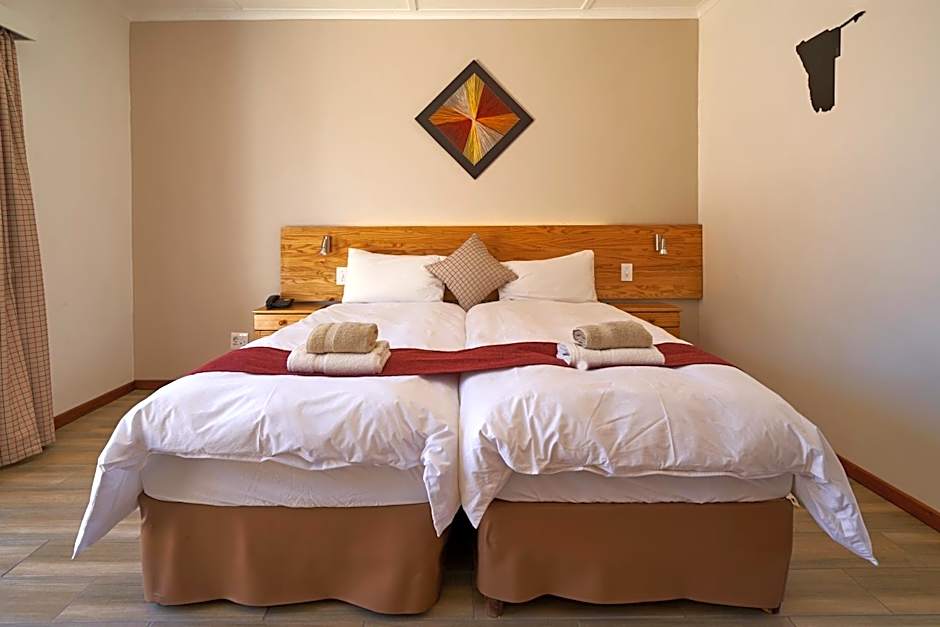 The standard rooms offer large double beds (only one room has a single bed), air conditioning/heater, tea/coffee maker, fridge and private bathroom. It has a TV with 9 channels.